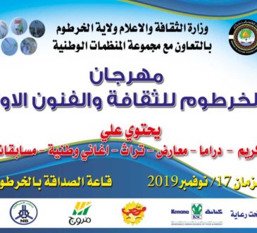 الثقافة والفنانطلاقة مهرجان الخرطوم الاول للثقافة والفنون في 17 نوفمبر الجاري6 سنوات ago2 نوفمبر، 20191.1kتنطلق بالخرطوم فعاليات مهرجان الخرطوم الاول للثقافة والفنون بقاعة الصداقة بالخرطوم في السابع عشر من نوفمبر الجاري المهرجان الذي يأتي...